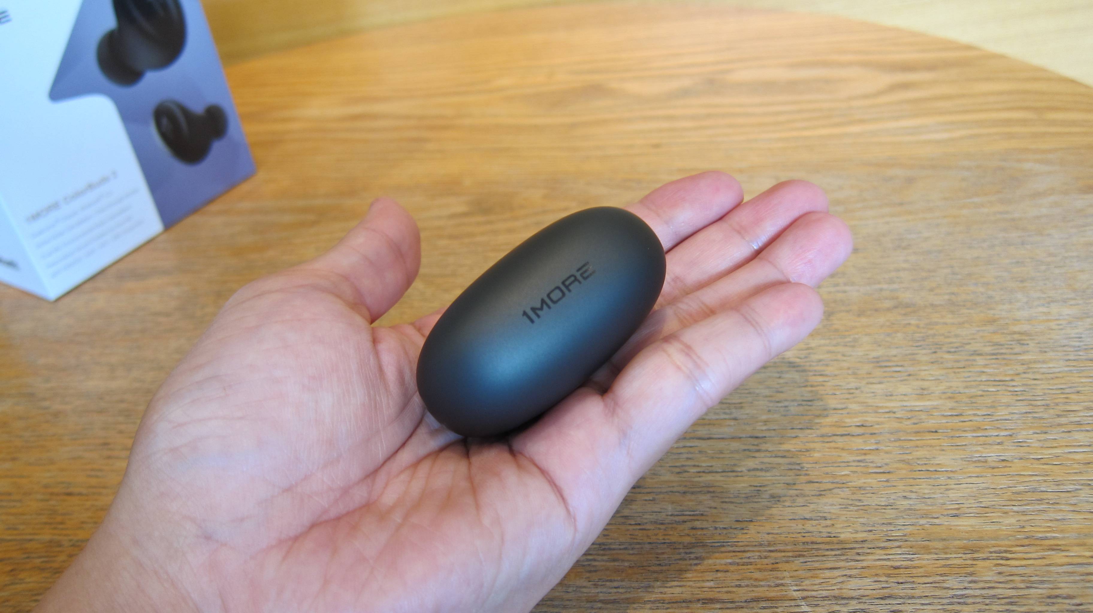 Prostornina polnilne škatle je zelo majhna in jo je mogoče enostavno držati z eno roko. Teža je približno 35g, kar je zelo izstopajoče med podobnimi izdelki. Enostaven za prenašanje in v žepu se vam ne bo zdel okoren. Po mojem mnenju je ta poenostavljena, ukrivljena ovalna škatla za polnjenje slušalk res primernejša za prenašanje kot oglata kvadratna škatla v dejanski uporabi.